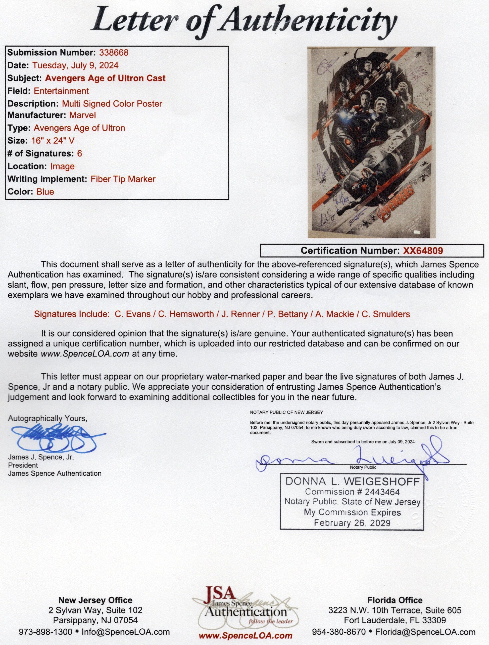 Avengers Cast signed autographed framed 16x20 photo JSA LOA
