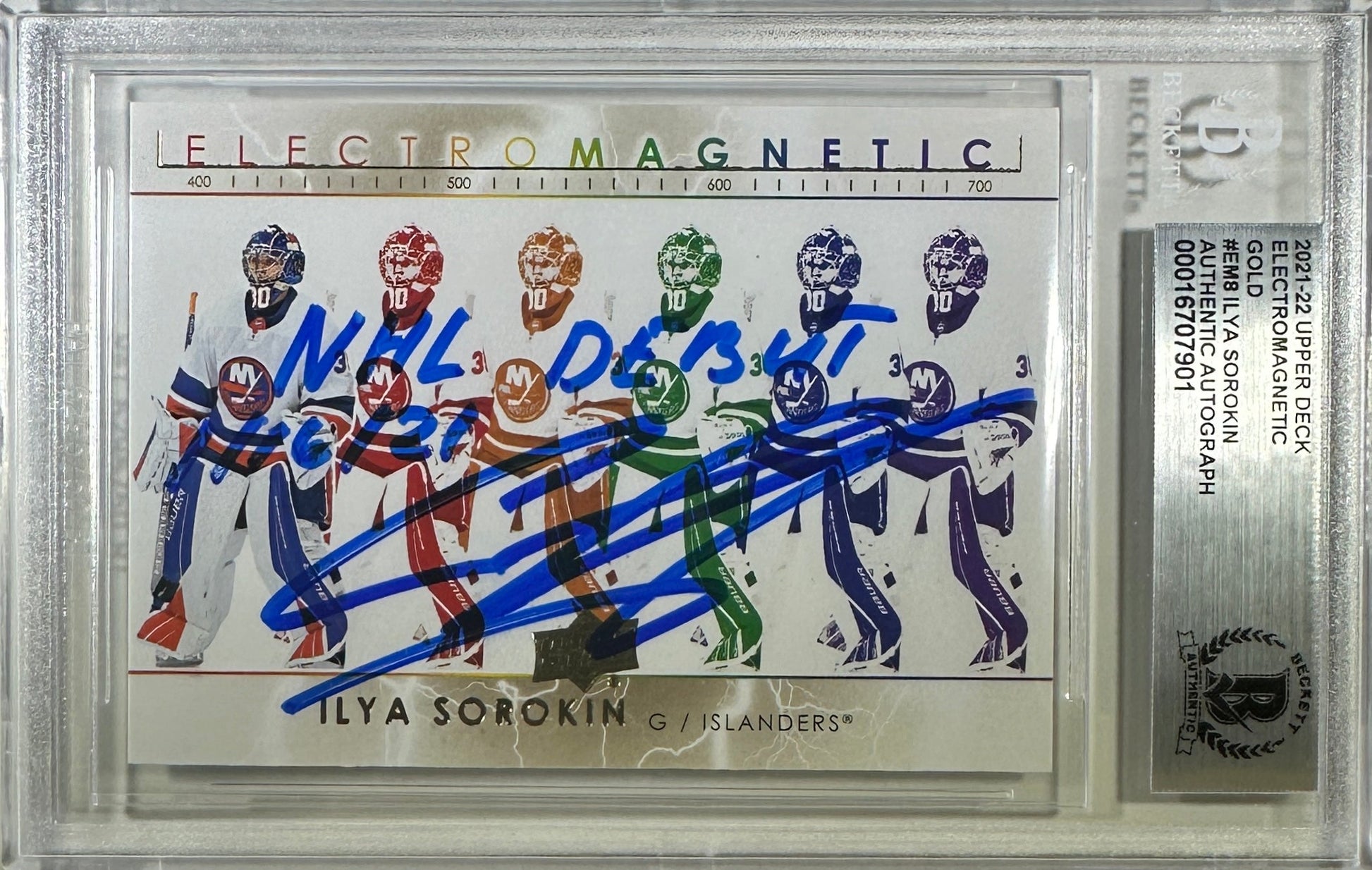 Ilya Sorokin 2021 Upper Deck inscribed encap RC New York Islanders BAS