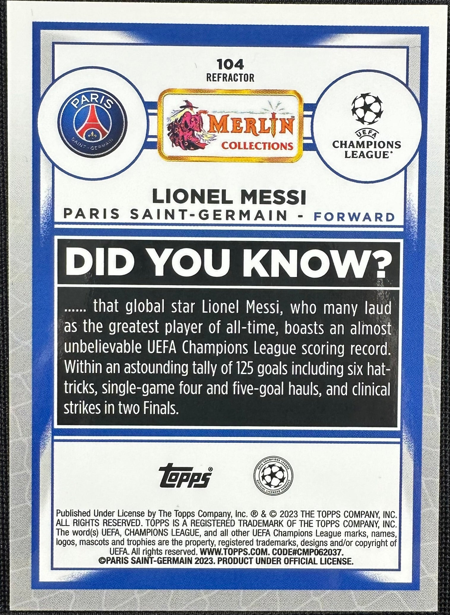 Lionel Messi Topps Merlin Sliver Refractor #104 2022-23 PSG