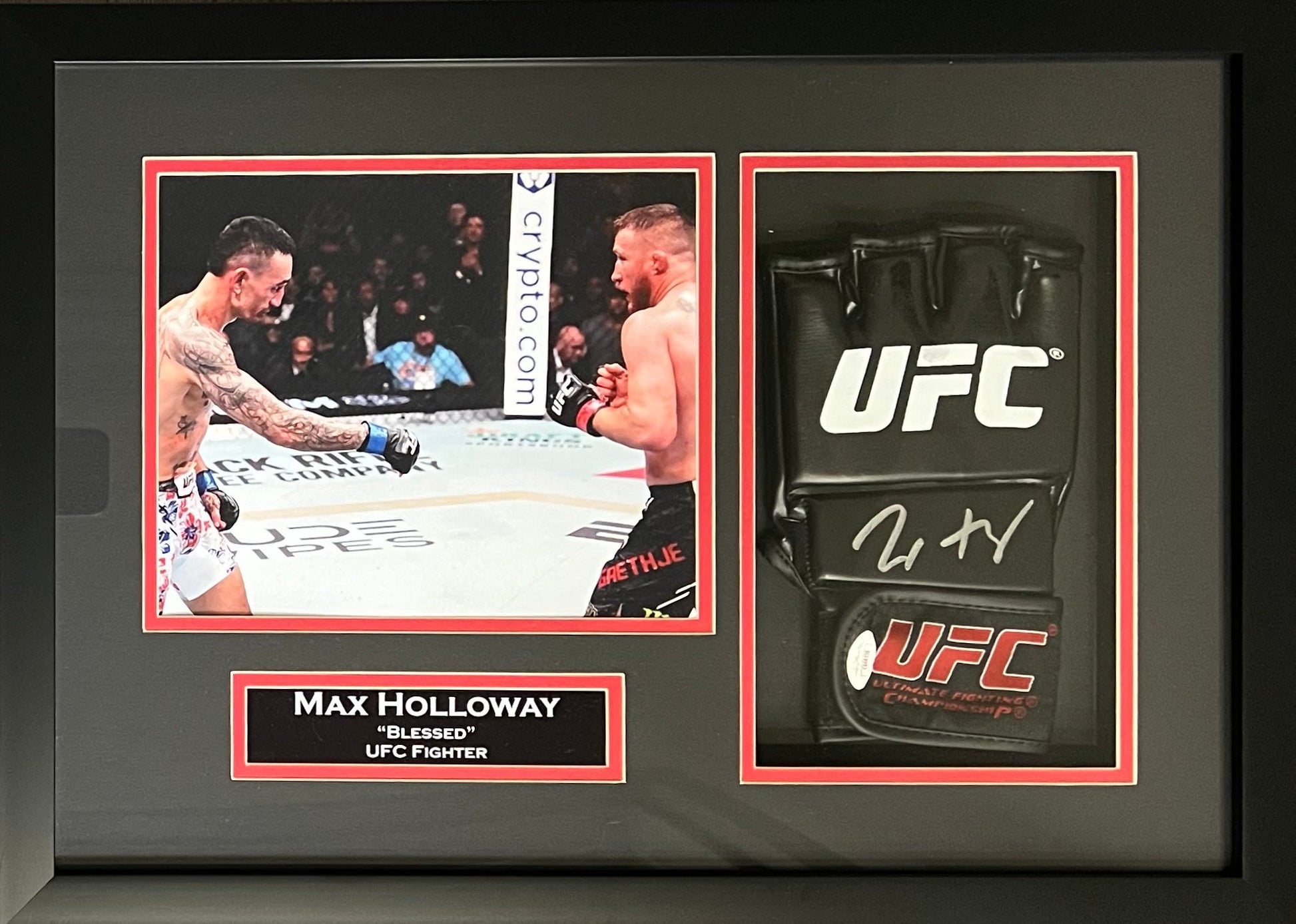 Max Holloway autographed signed framed glove UFC JSA COA Blessed Justin Gaethje