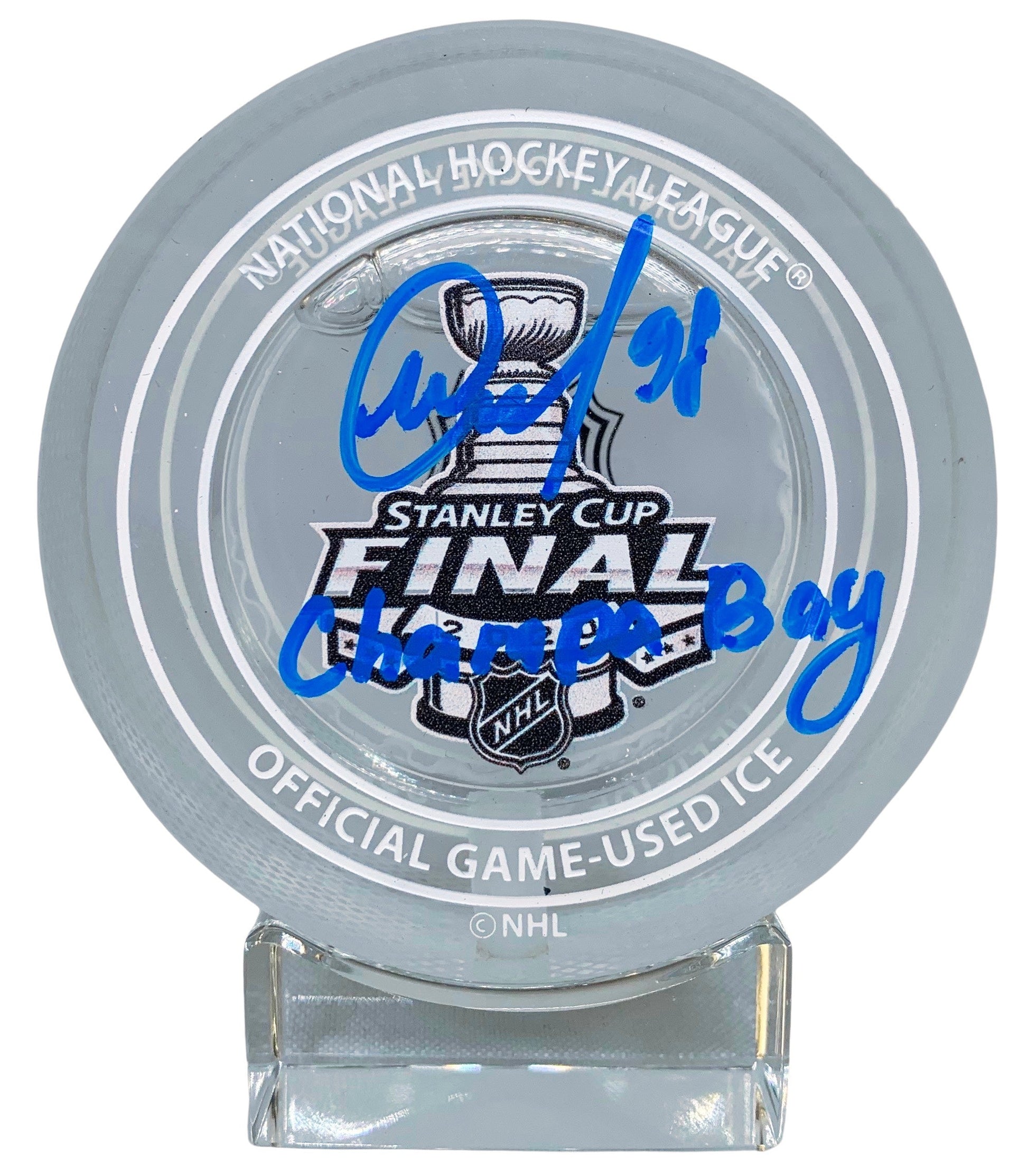 Mikhail Sergachev signed inscribed Stanley Cup Game Used Ice Puck Lightning JSA