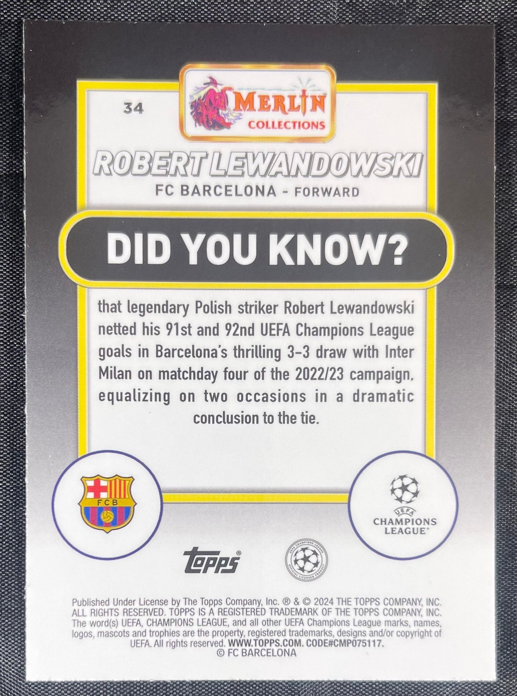 Robert Lewandowski 2023-24 Topps Merlin Pink Mojo #34 /275