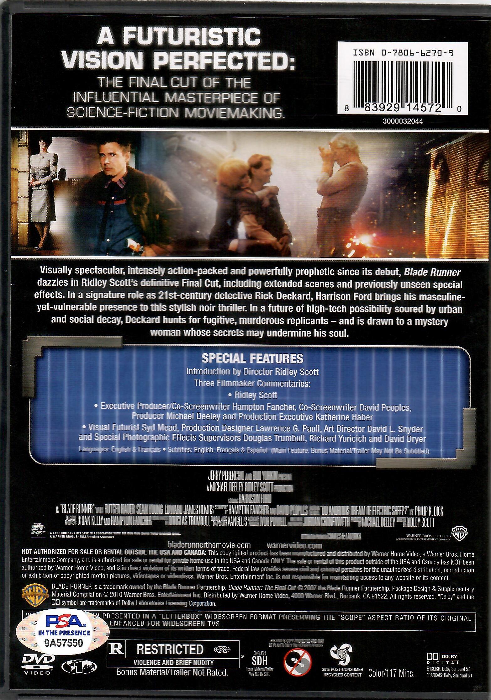 Sean Young autographed DVD cover Blade Runner PSA ITP Rachel